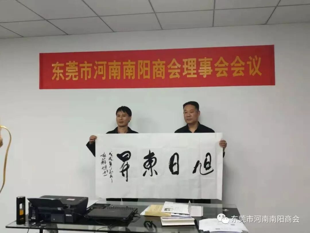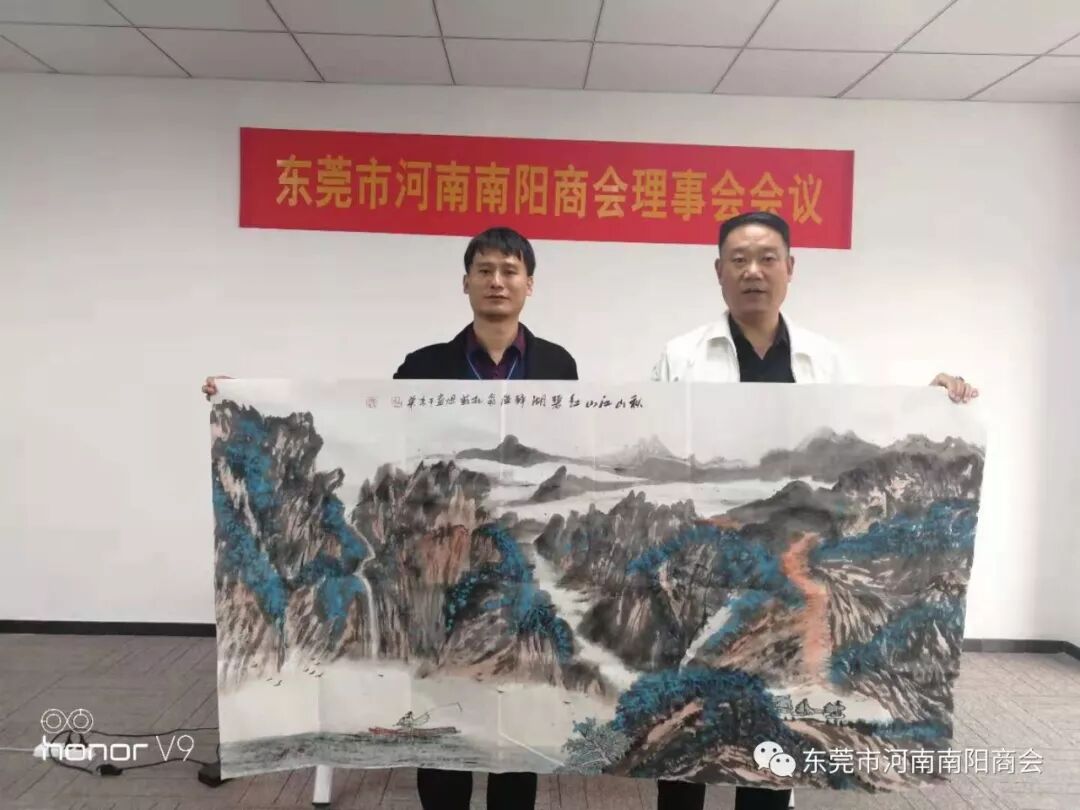 12月9日上午,中国著名山水画家杜苏旭莅临东莞南阳商会指导工作,特地为东莞南阳商会泼墨创作秋山江山红画作和旭日东升书法一幅赠送我会,祝东莞南阳商会象秋天一样收获满满,红红火火,旭日东升!
