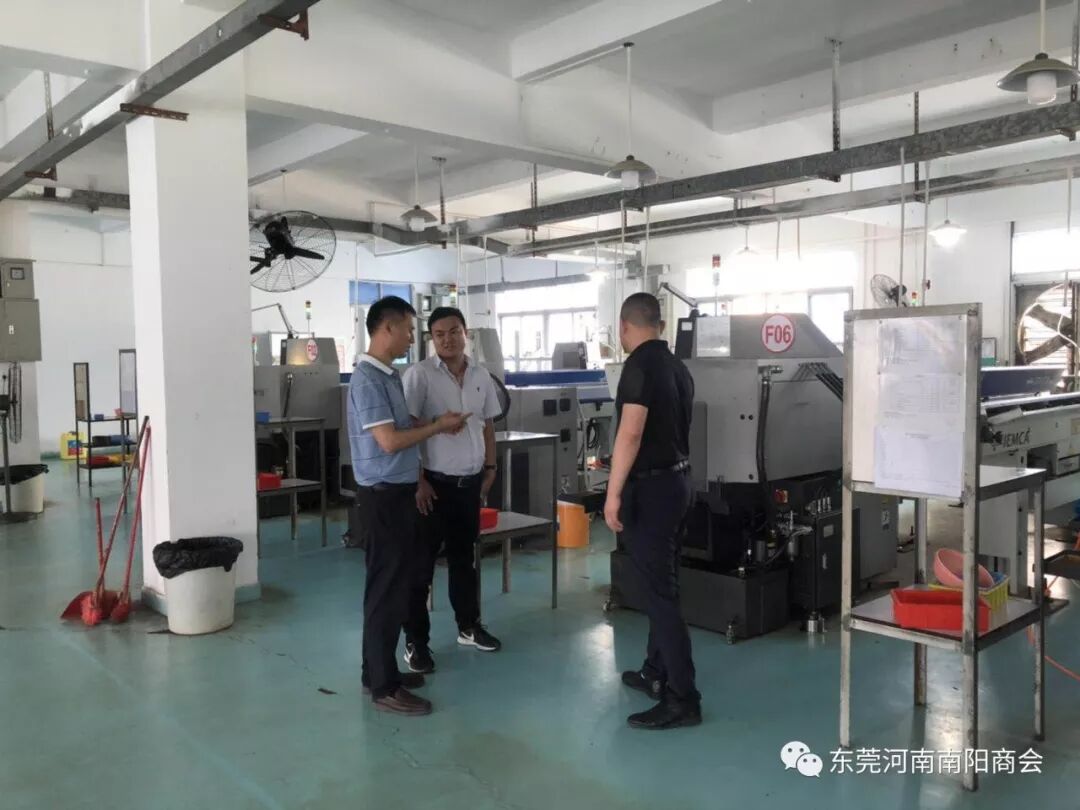 杨权,南阳新野人,从事五金件设计制造已多年,虽然年纪很轻,但在业内已经是声名在外。贡会长详细了解了企业经营的情况,对杨权在东莞五金件制造行业取得的成就表示认可。邹会长也兴趣十足,和刘红旗理事长一起问了很多问题,大家带着学习的态度了解一个陌生的行业,虽然一时不能全懂,但看到会员企业发展势头良好,也由衷的表示高兴。