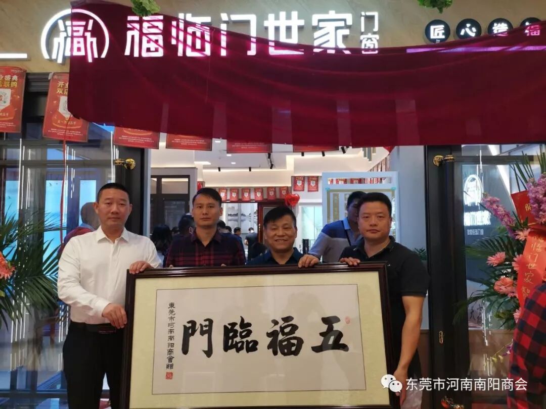12月23日,商会监事刘红旗总经理”福临门世家“在东莞红星美凯龙开业,商会领导送去书法匾一幅(五福临门),祝福刘总的福临门世家旗舰店生意兴隆,财源滚滚!在商会这个大家庭里,会员能充分感受到商会的关心和支持,宛商一家人,处处有关心!